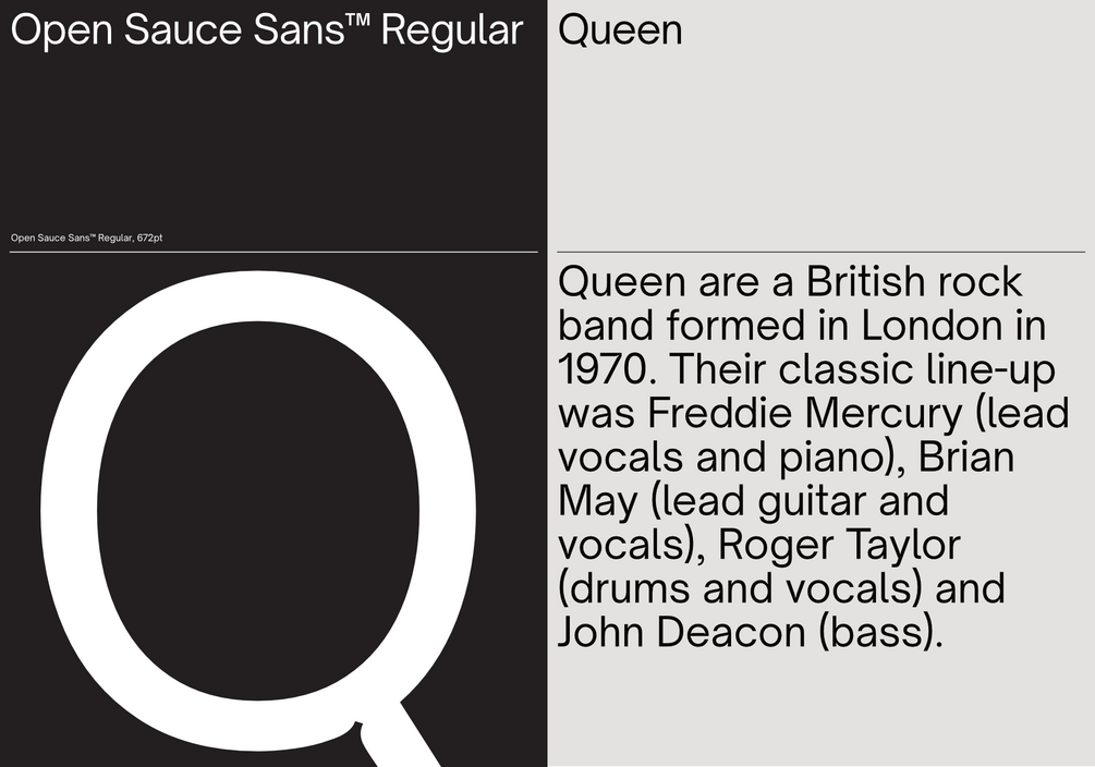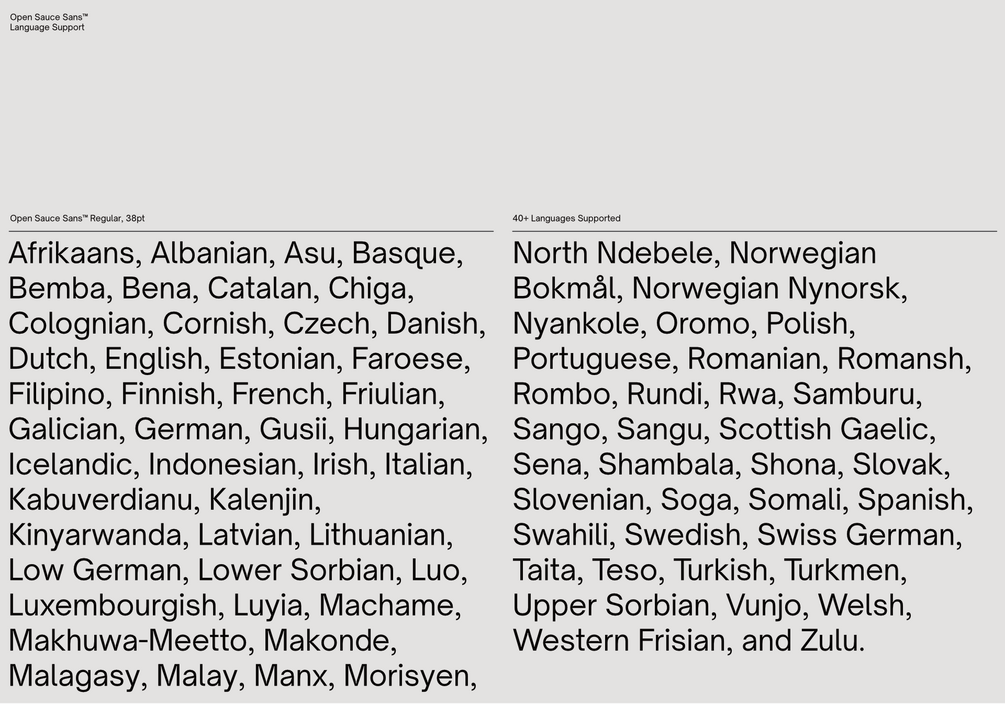 Open Sauce Sans™ is a typeface that we developed for Creative Sauce's internal type system. It is a compact typeface that is optimised for better viewing small text on screen and print. Open Sauce Sans fonts are under the SIL Open Font License and is going to be actively developed, improved and tested.